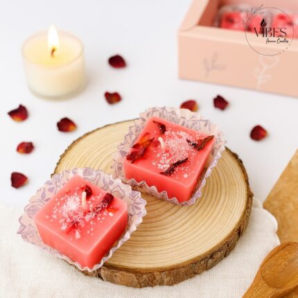 Gulaab Barfi Candle (Set of 6) | Handmade Soy Wax Mithai Candles with Rose Fragrance | Festive Decorative & Gift Pack