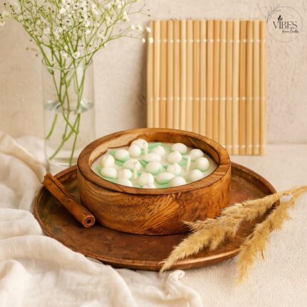 Handmade Mogra Bowl Candle | Wooden Decorative Soy Wax Candle with Mogra Fragrance | Festive & Home Décor Gift