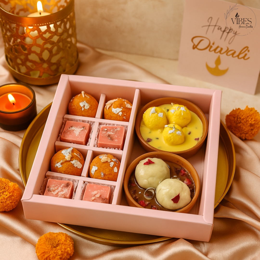 Bring home the festive joy with our Diwali Mithai Hamper Candle Collection, a luxurious gifting choice that blends tradition with elegance.