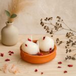 Handmade Rasgulla Candle | Festive Dessert Soy Wax Candle with Rose & Sweet Spices Fragrance | Eco-Friendly Gift