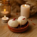 Rasgulla Candle, Handmade Dessert Candle, Festive Soy Wax Candle, Indian Sweet Candle, Diwali Gifting Candle, Eco-Friendly Candle, Luxury Soy Wax Candle, Rose Spice Candle, Handmade Candle Gift, Festive Home Décor Candle