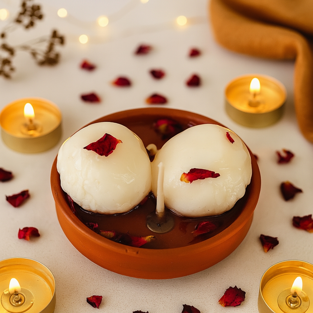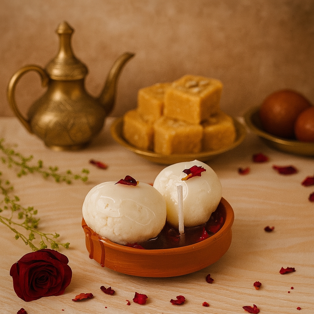 Rasgulla Candle, Handmade Dessert Candle, Festive Soy Wax Candle, Indian Sweet Candle, Diwali Gifting Candle, Eco-Friendly Candle, Luxury Soy Wax Candle, Rose Spice Candle, Handmade Candle Gift, Festive Home Décor Candle