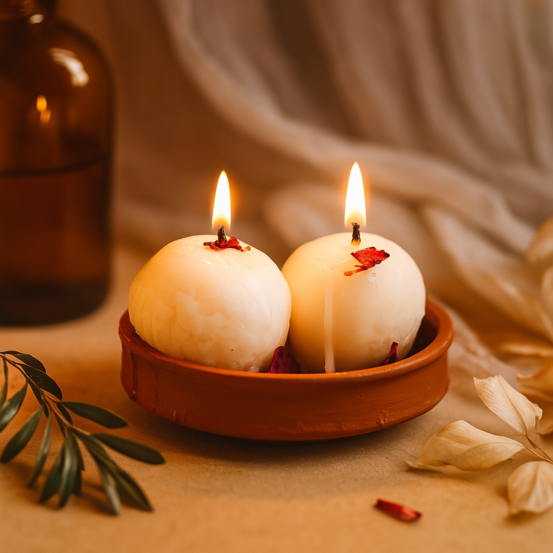 Handmade Rasgulla Candle | Festive Dessert Soy Wax Candle with Rose & Sweet Spices Fragrance | Eco-Friendly Gift